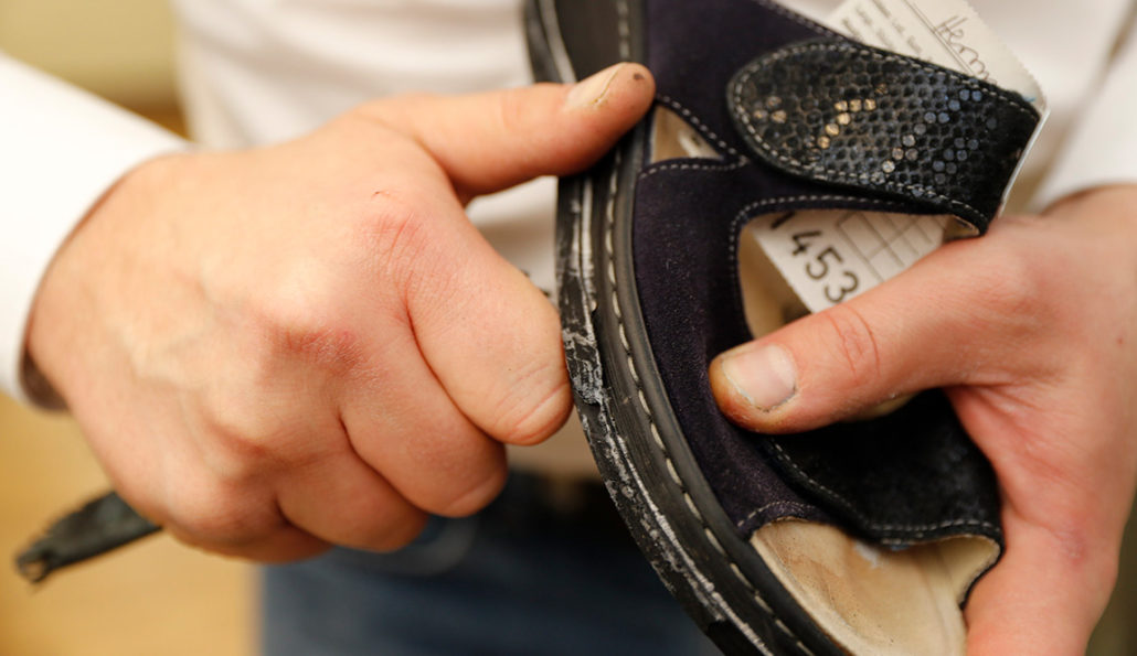 Leichte Fußbeschwerden oder Schmerzen in anderen Körperregionen können mit Schuhzurichtungen reguliert werden. In der hauseigenen Werkstatt von REHA-OT setzt das Team all Ihre Anpassungswünsche gewissenhaft und präzise um. Wie bei allen Aufgabengebieten der Orthopädie-Schuhtechnik ist auch bei den Schuhzurichtungen die sorgfältige und fachgerechte Durchführung der Anpassungen von entscheidender Bedeutung. Da wir über eine langjährige Erfahrung verfügen, können wir traditionelles Handwerk mit neuester moderner Technik verbinden.